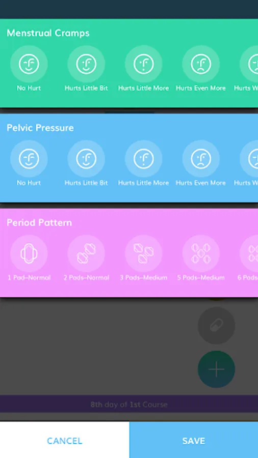 Log your period flow intensity, pain levels of your menstrual cramps and pelvic pressure, medication cycle for monitoring by your health care provider and take full control of your health with the app.