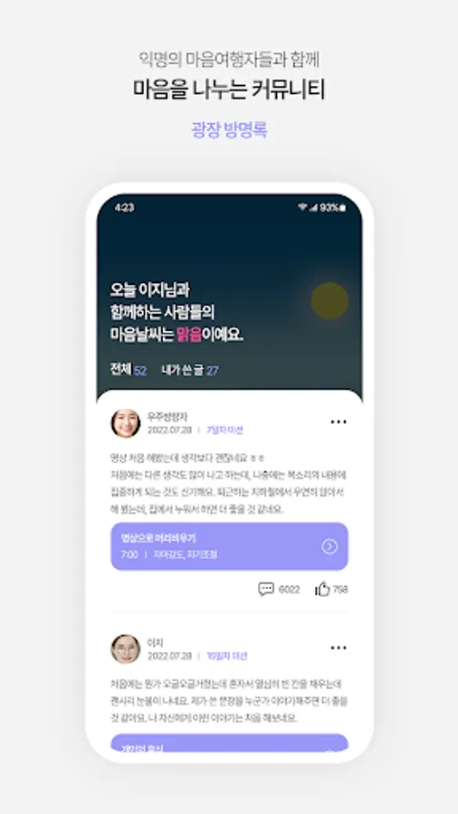 - Square: A community where you can post your thoughts about your emotions or concerns after completing a day's mission and share them with others