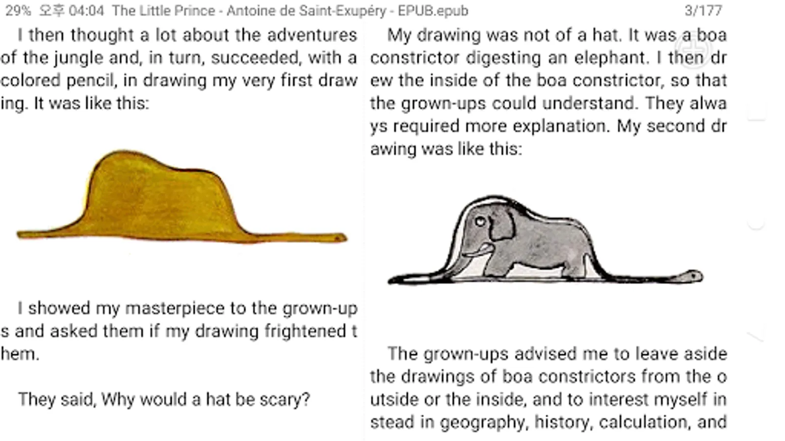 E-books (EPUB, MOBI, FB2, Amazon Kindle(AZW,AZW3,AZW4), CBZ, CBR) can be read immediately, and two pages on a screen like a paper book are convenient.