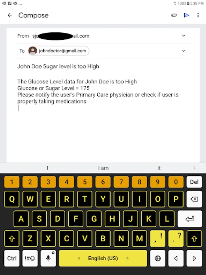 If the values entered are within a threshold the App can send an email/SMS alert to a trusted health provider or Next-of-Kin