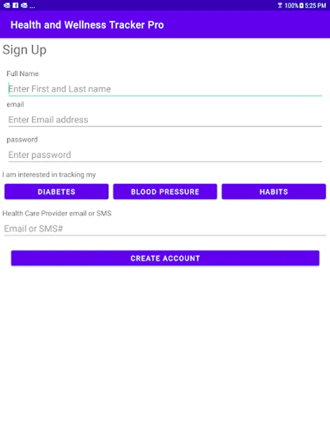 When you first run the application you are prompted to sign-up. Note this Sign-up is only created on your local device.