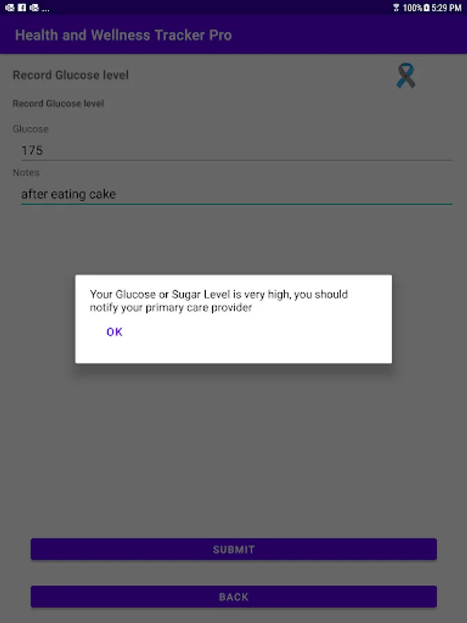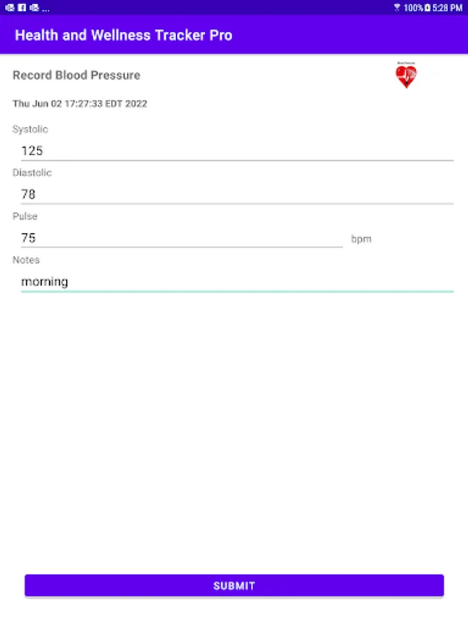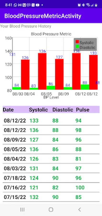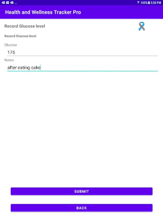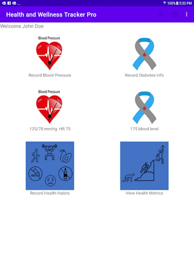 Can track your glucose and/or Blood pressure levels and heart rate. You can view the metrics for your Diabetes or Blood pressure using a bar or line chart.