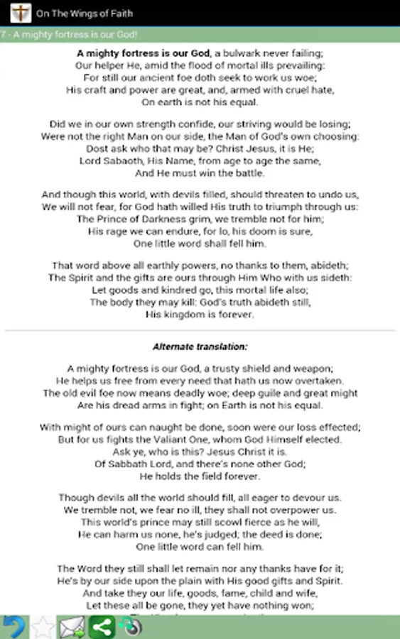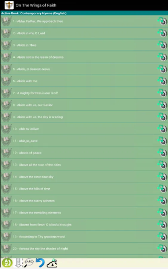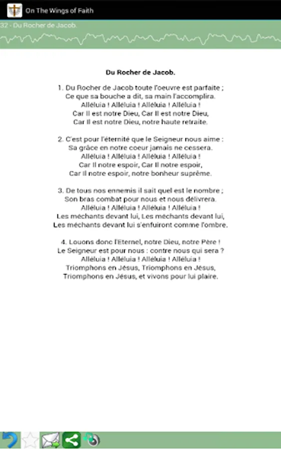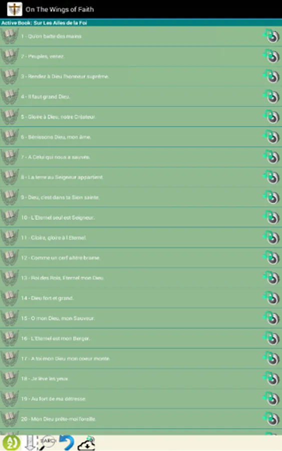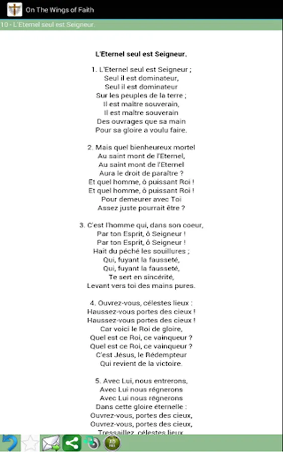 The popular Christian hymn book (Sur les Ailes de la Foi) is now available at the tip of your hand with this App. All the Hymns lyrics, the musics are now at your reach. Worship the Lord with all the beautiful hymns of On The Wings of Faith. Each Christian should install this App to enhance their worship service. An extra Hymn book is included in the App.