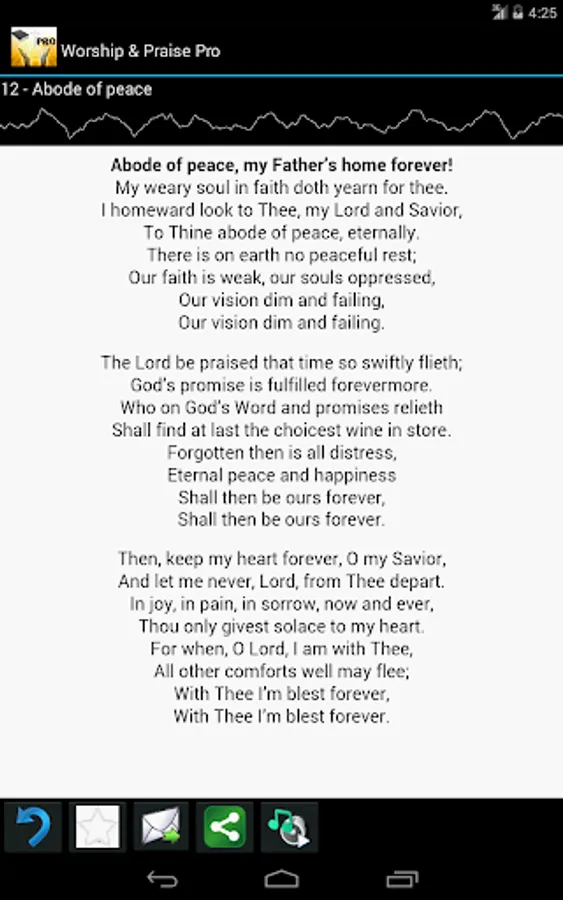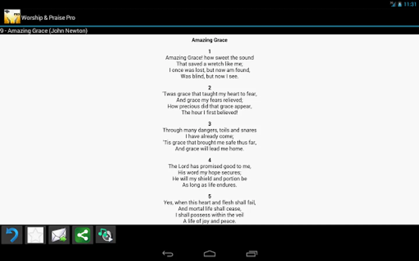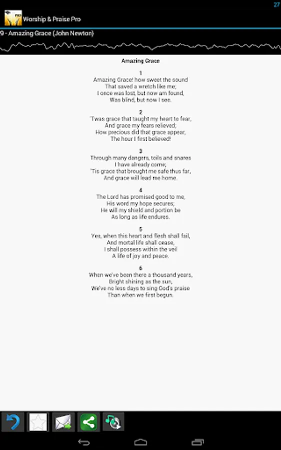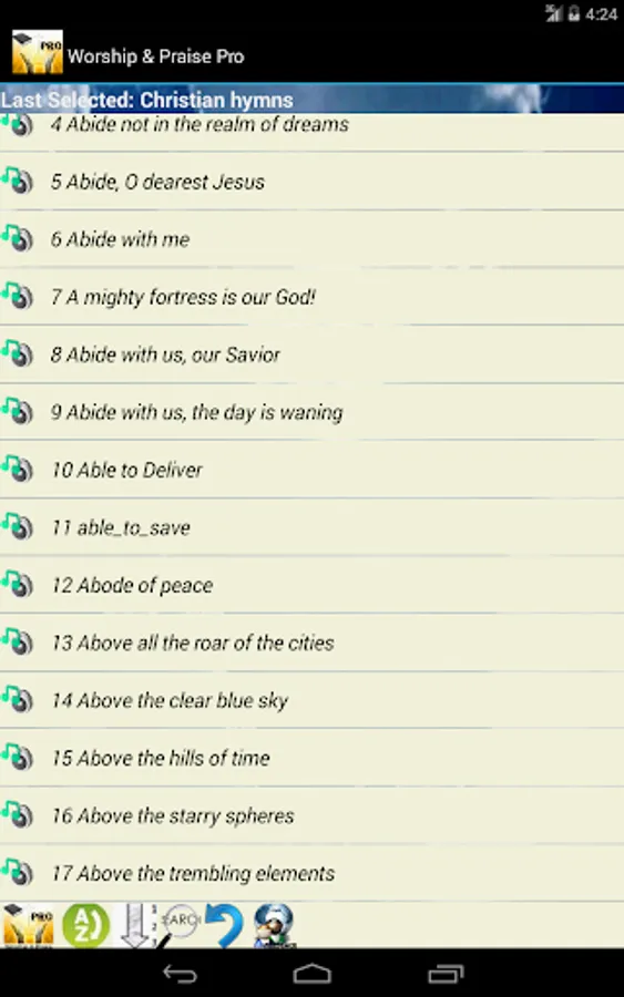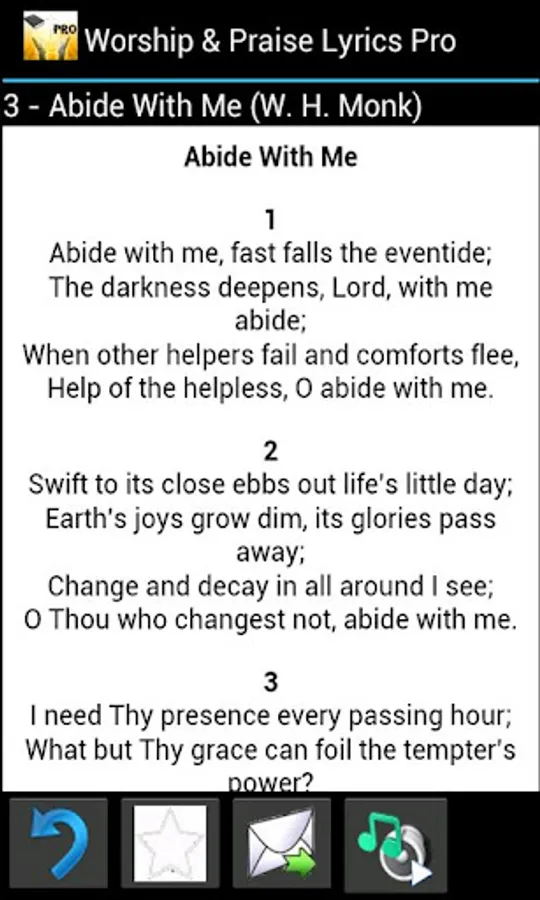 Worship and Praise Lyrics Pro is brought to you by Eznetsoft SJ. It is a dedication to our Lord and Savior Jesus-Christ. This software is brought to the Christian community to help them Worship using the standard hymns.