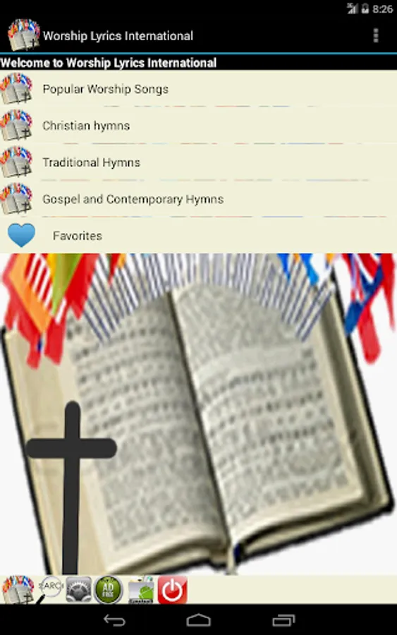 - Audio, Tunes listen to some of the Songs, Hymns in this App.