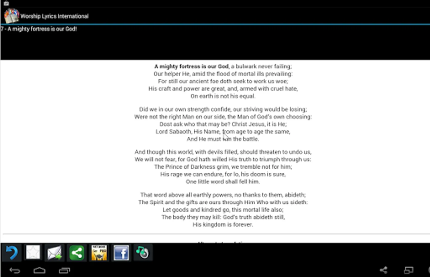 Over 16,200 song lyrics for your worship service in several languages. Categorized by Languages, designed for all Christians around the world. Many of these songs come with their Tunes/Audio music so you can learn new hymns.