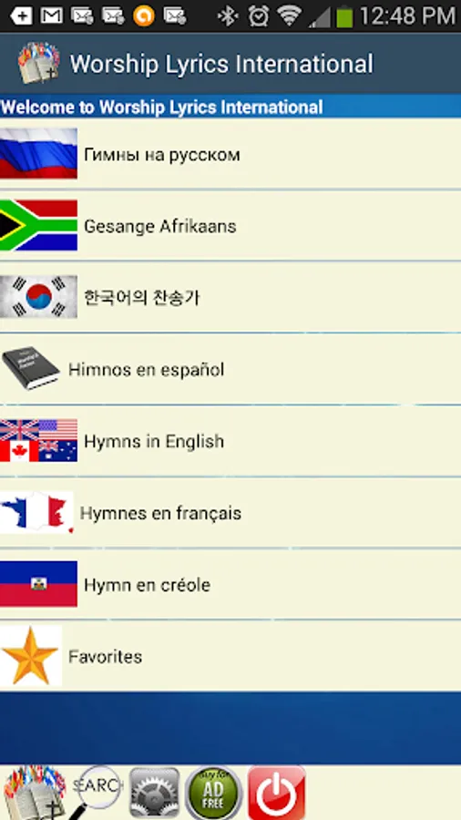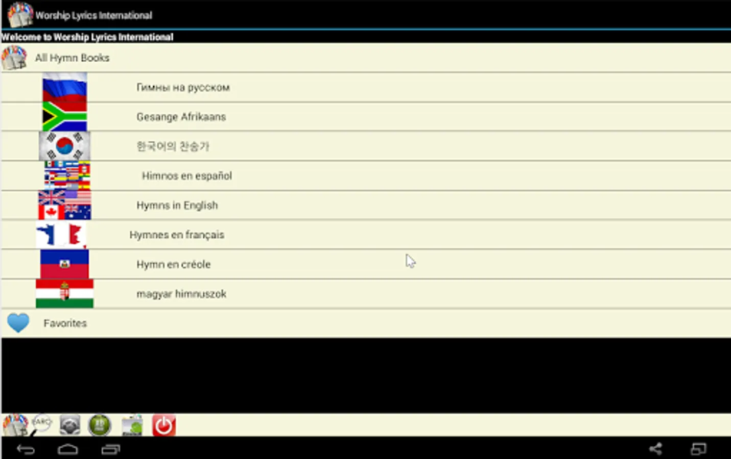 Hymns in: English, French, Spanish, Creole, Russian, Hungarian, Korean, and more.