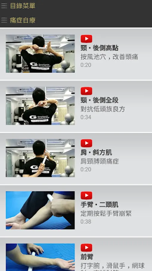 GigaFit 石波木棍 自療組合 - 以簡單工具作自我療癒,分享一般痛症治療手法。而其他手機apps 包括動拉十七式、三七運動、每月動作示範等。