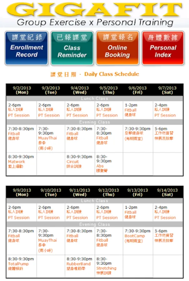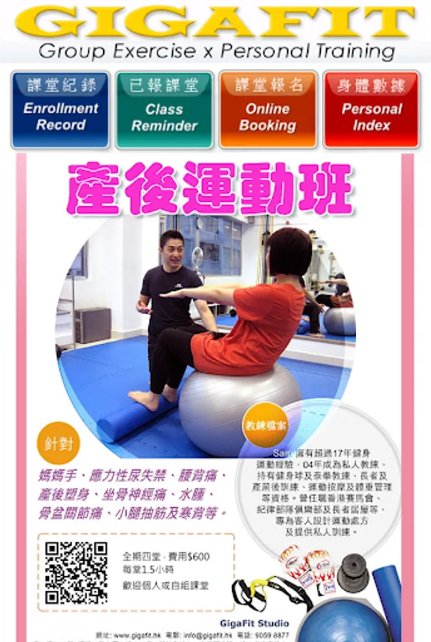 電話: 9059 8877 - 教練: Sam Wong - 網址: www.gigafit.hk