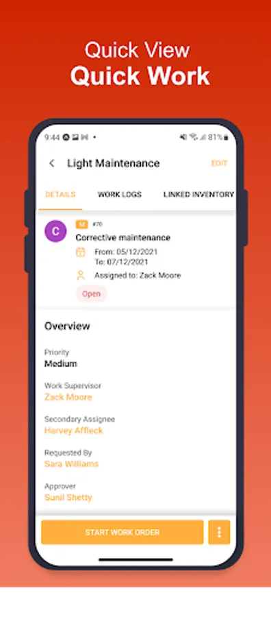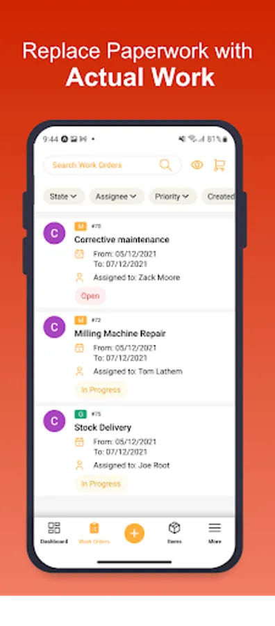 - Work Orders: Create and assign work orders to your team and review progress from anywhere at any time