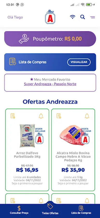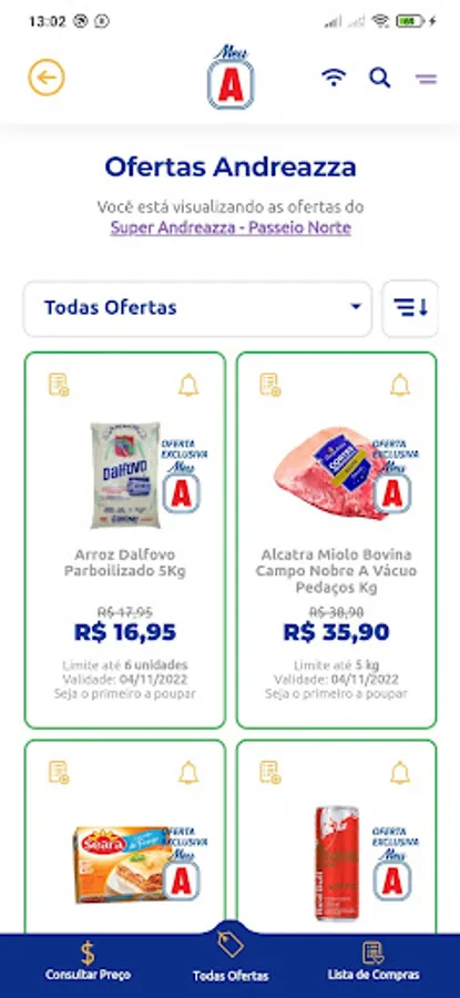 Promotions are valid for the quantities, dates, and stores reported in the app. If you have any questions, suggestions or criticism, send your e-mail to meu@superandreazza.com.br
