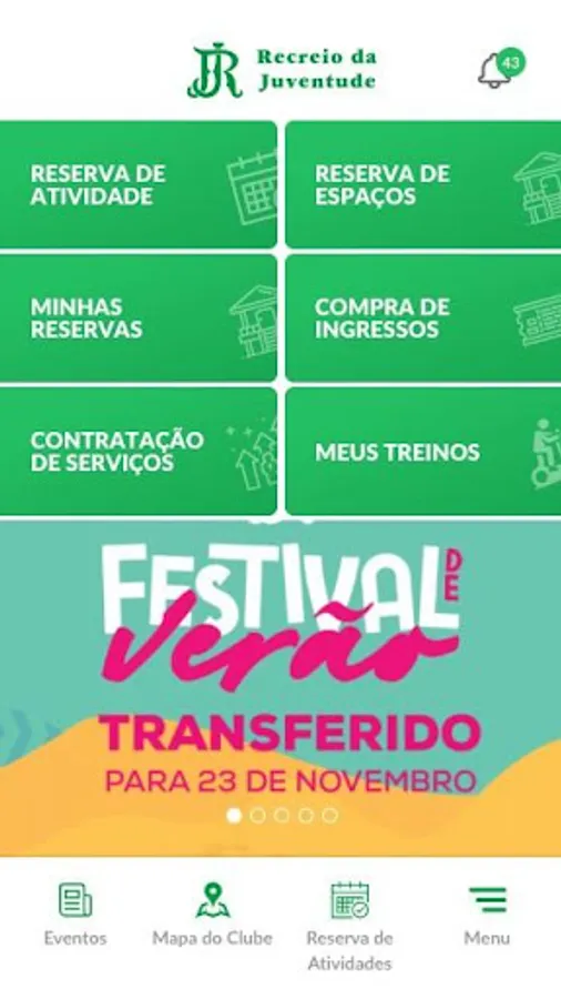 The Youth Recreation application facilitates routine offering its members access to exclusive content and the ability to change registration information, renovation and contracting services, booking spaces and purchase tickets, among other facilities.
