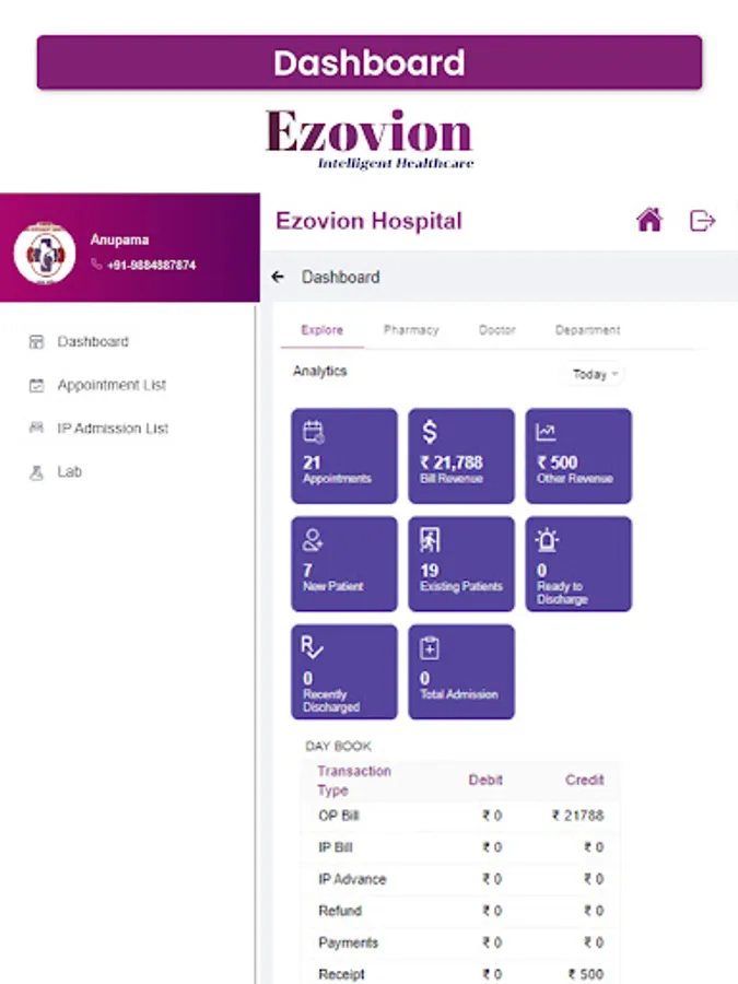In addition, Ezovion can manage your whole healthcare operation by managing patients, hospitals, finances, pharmacies, labs, and more from a single app. Hospital Management Software provides a completely connected experience across all modules. Our system has four main features: Pharmacy Management, Stock Management, Billing and Lab Management, Reports and Analytics, and Inventory Management.