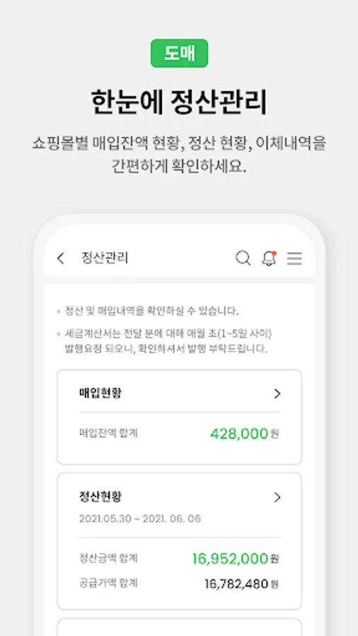 The status of purchase balance by shopping mall, settlement status, and transfer details