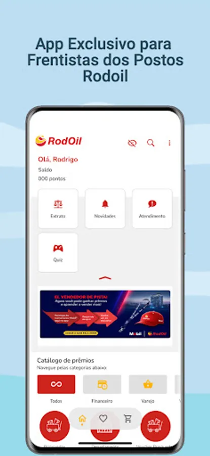 Exclusive application of the Incentive Campaign Rodoil na Pista For attendants at participating Rodoil gas stations, the App is not about discounts for supplies and does not have this purpose.