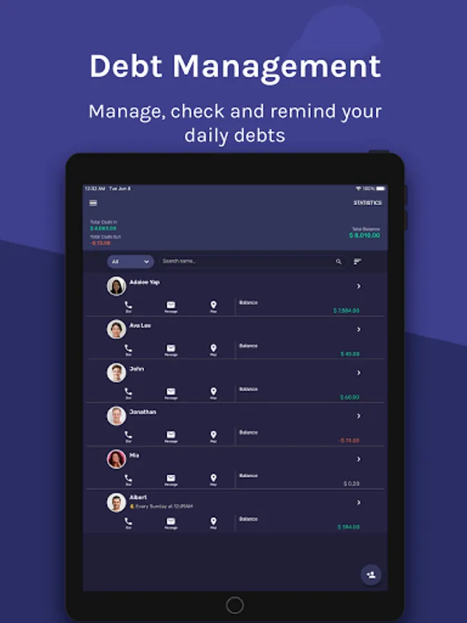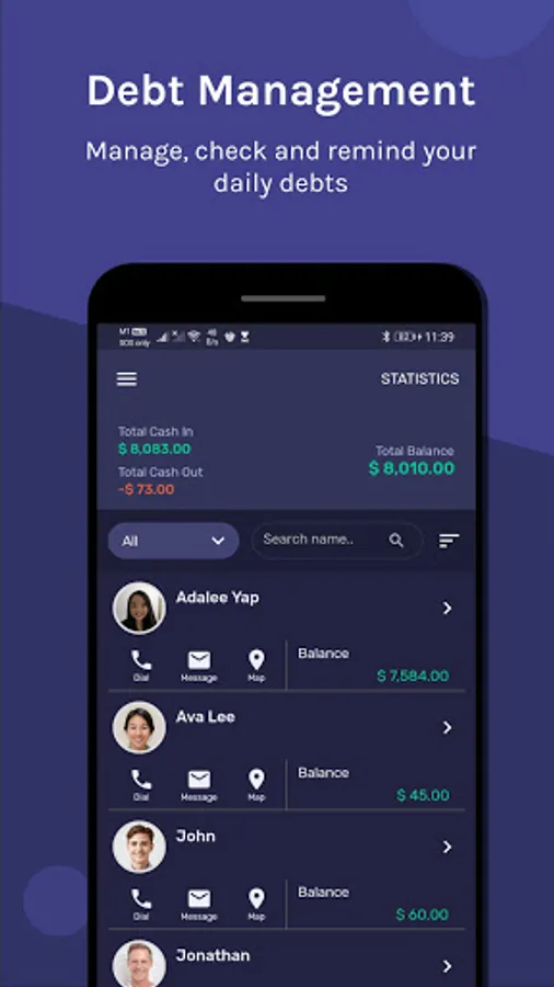 📞 Call & SMS – Call/SMS or navigate to your debtor or loaner easily.