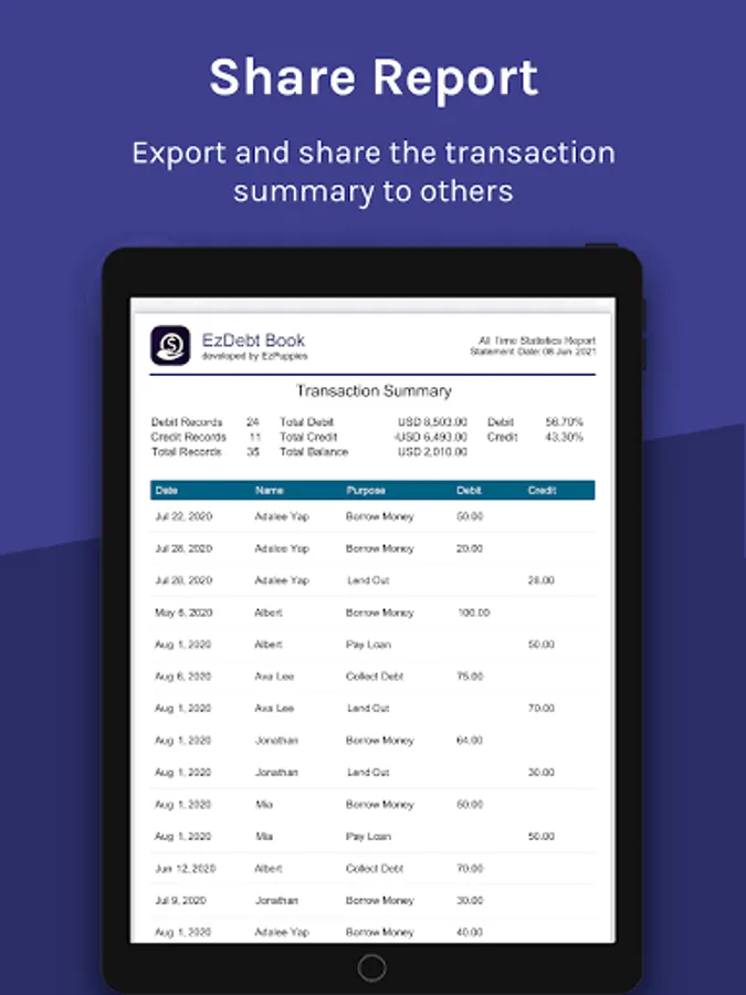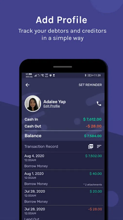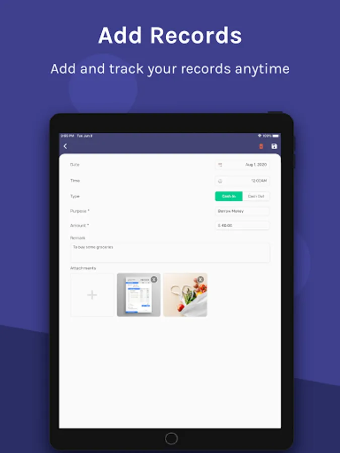 🖌 Record with Attachments – Record your loan or debt by a designed form that support to upload multiple attachments.