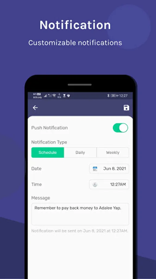 🔔 Notification – Freely to set notification to specific profile by specific date and time, daily and weekly notification.