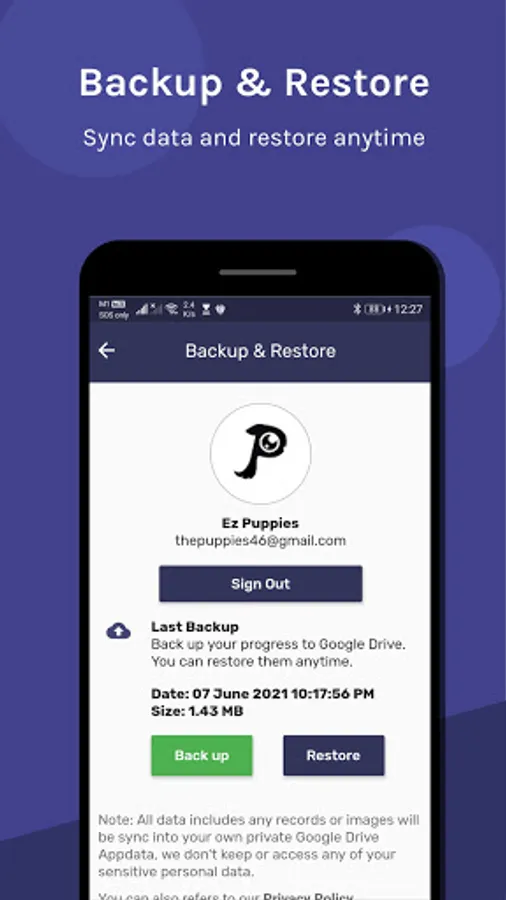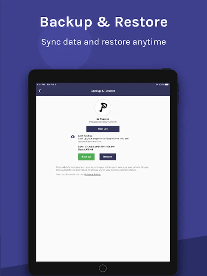 ☁️ Cloud Syncing – Never loss your data by syncing your data to your own private personal Google Drive.