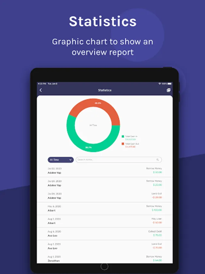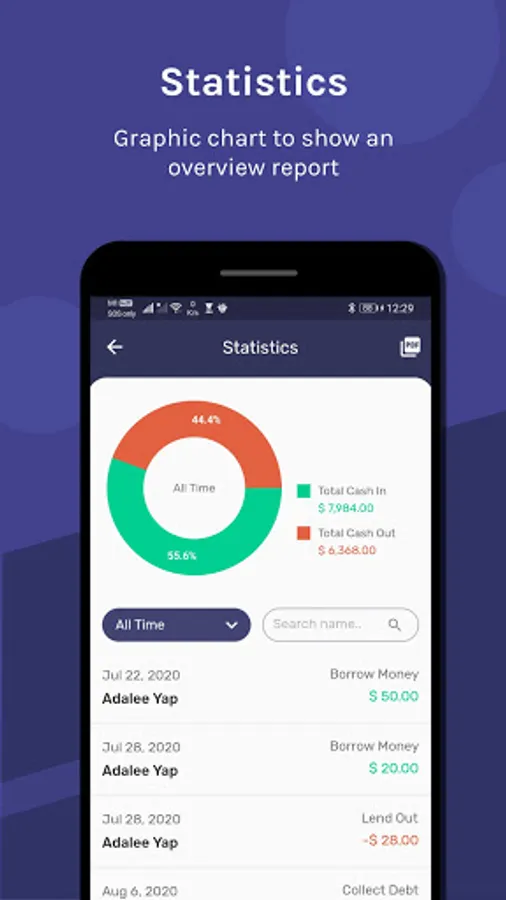 📊 Statistics – Overview your statistics debts in graphic chart and transaction history.