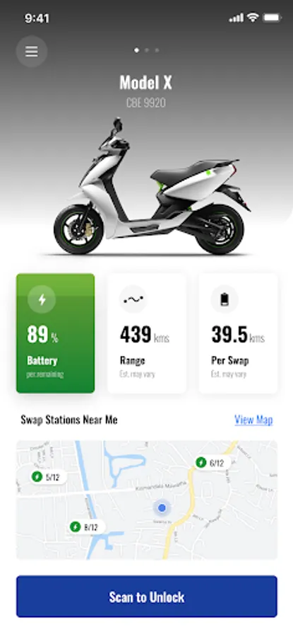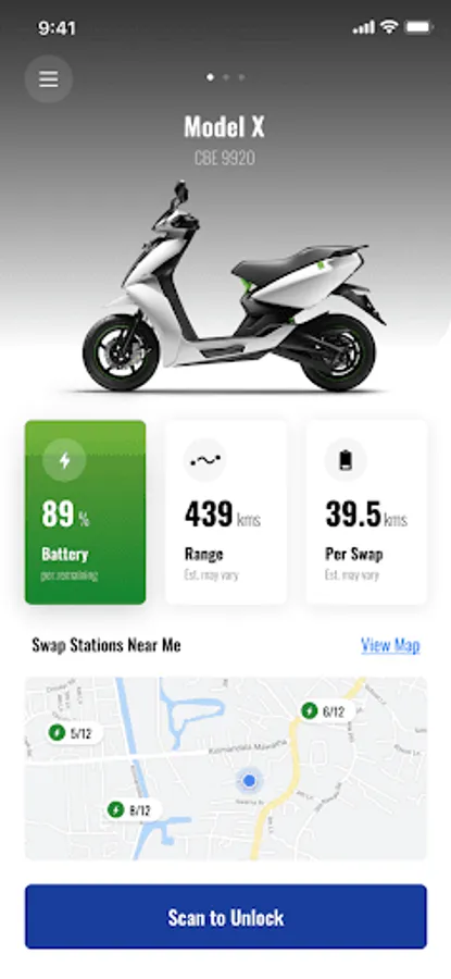 All a rider has to do once the BSS is reached is to open the EZR POWER HUB APP, scan the QR of the BSS, then select the battery type and press on the “continue” button to open the locker/cabinet door. Once the door is open, remove the discharged battery from the bike, place it inside the empty cabinet and connect to the charging cable inside the locker, note to close the cabinet door and follow and complete the payment message appearing on your mobile. On payment, the door of the cabinet containing the charged battery will open. Simply unplug the battery, remove it from the cabinet, note to close the cabinet door, insert the battery in the scooter/bike, connect the cable and drive away.