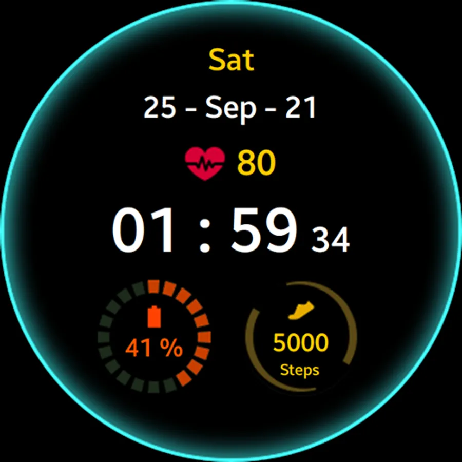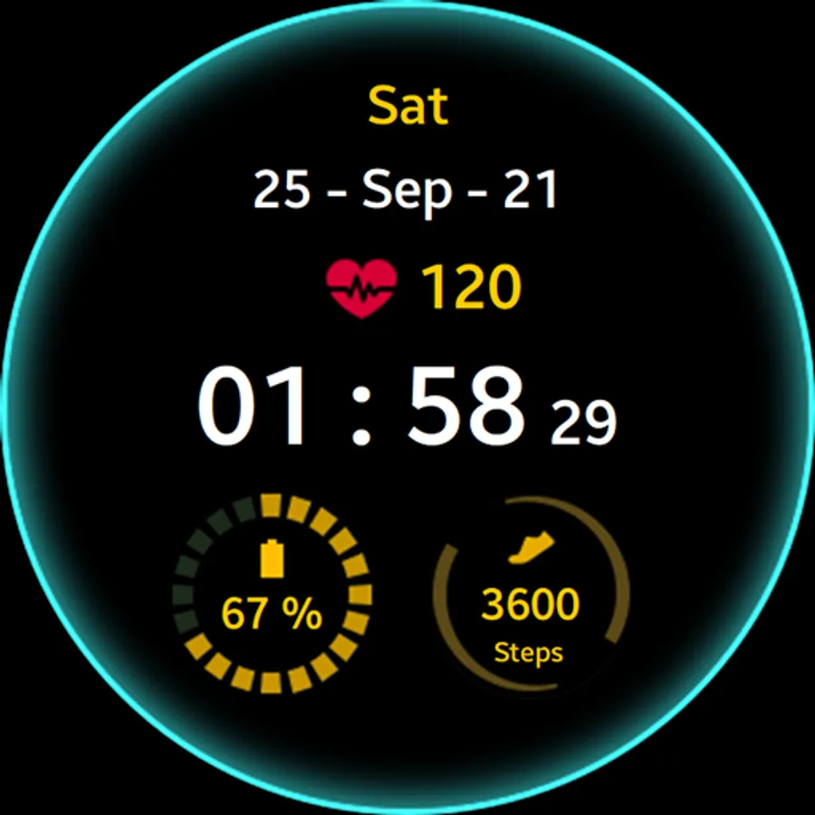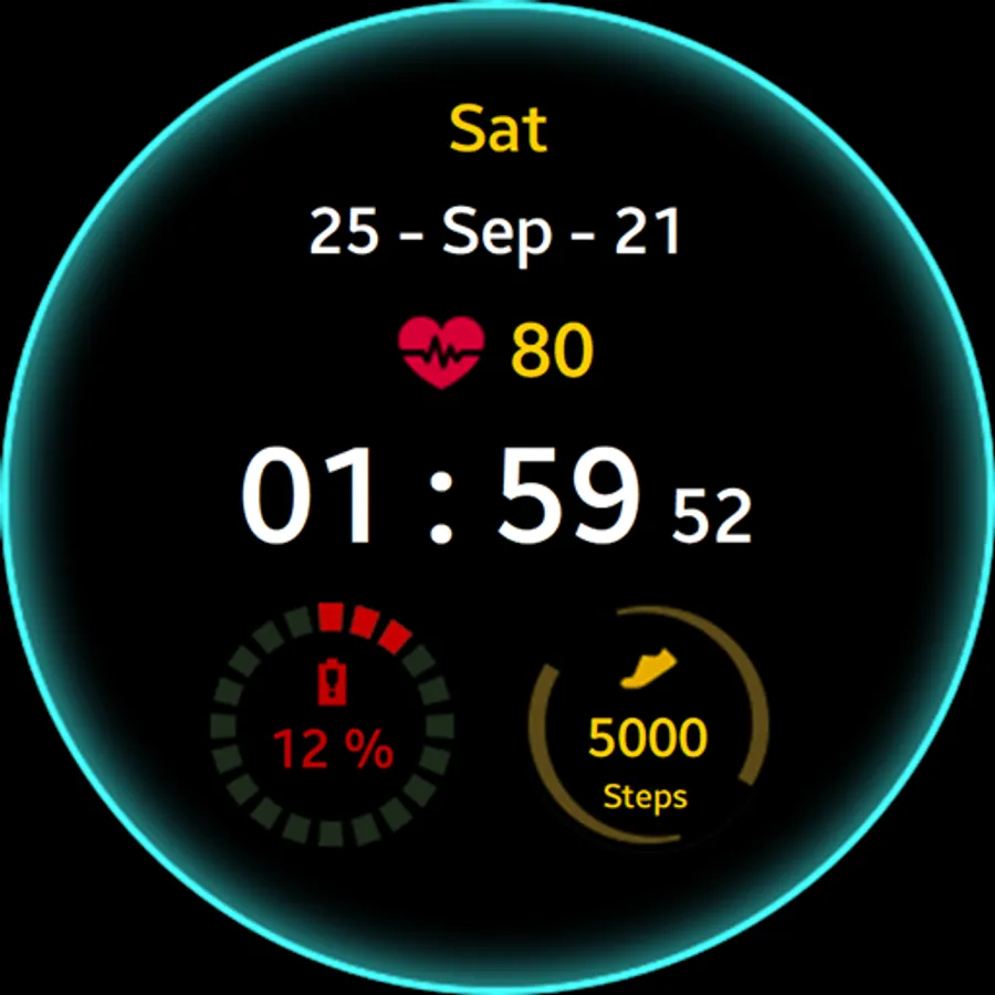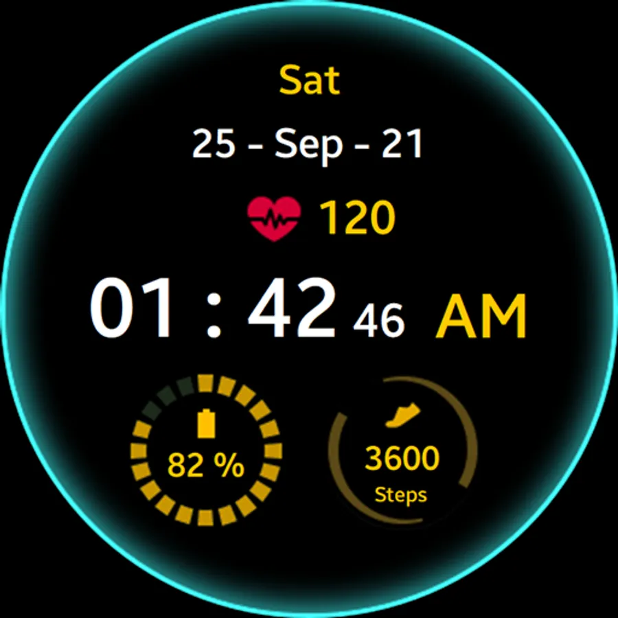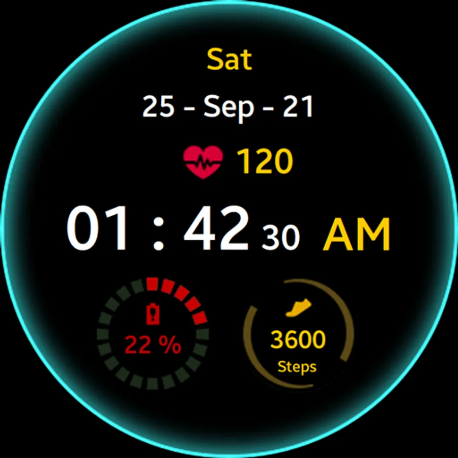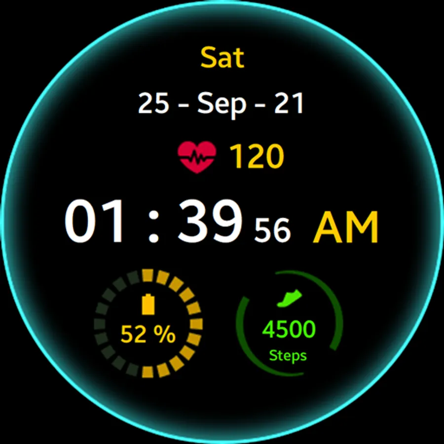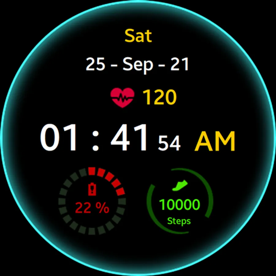 Simple, beautiful, and glowing watch face. Be unique and special and capture the eyes of others around you with this green glow watch face. This beautiful design allows you to shine without losing information that matters to you. With a simple glance at the watch, you will be able to see the time in 24h & 12h format, the date, your heart rate reading, your battery level, and the number of steps you have walked for that day. This watch face not only gives you the information but also helps you visually to immediately take decision and actions. With a battery indicator that changes the color from yellow to orange and then red depending on the battery level and a step count indicator that glows in green when you reach your goal. With always on display mode, this Wear OS watch face is designed for you.