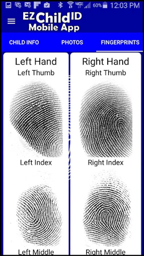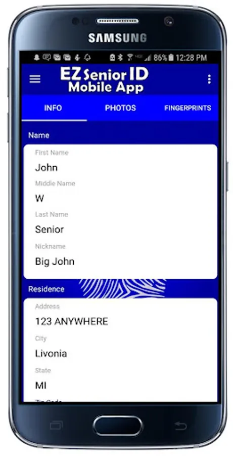EZ Senior ID App allows you to enter your vital information and photos and store them in a convenient place. You can also attend a Senior ID event that supports the EZ Senior ID app and have the information sent directly to your phone at the event. At the event they will enter all your important information, take photos and fingerprints. The information can then be sent directly to your phone. The information is encrypted, so your child's identity is safe. At the end of the event all the data is deleted using the DOD standards.