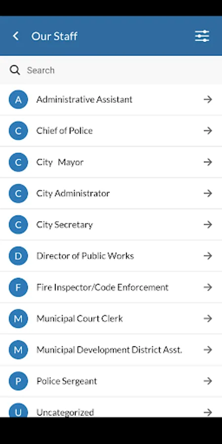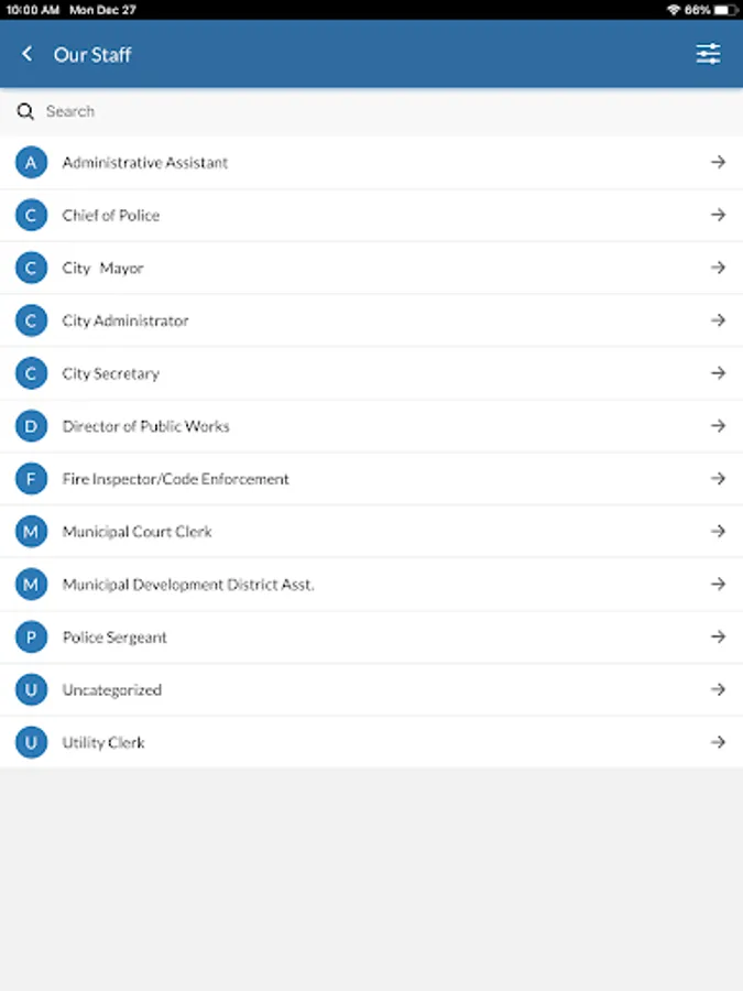 - Staff listings