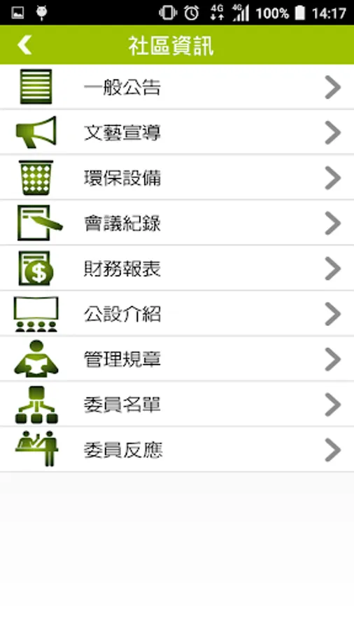 1.社區公告、留言板、財務報表、會議紀錄等資訊