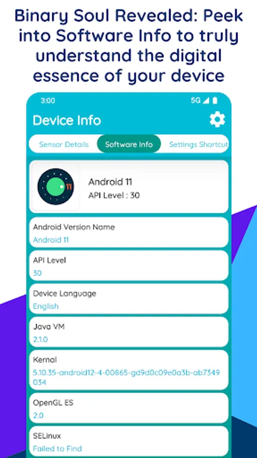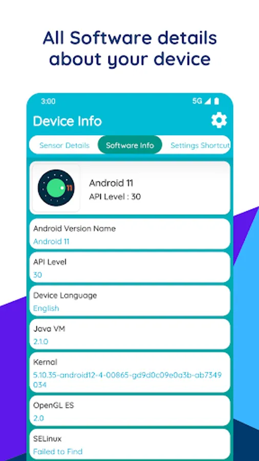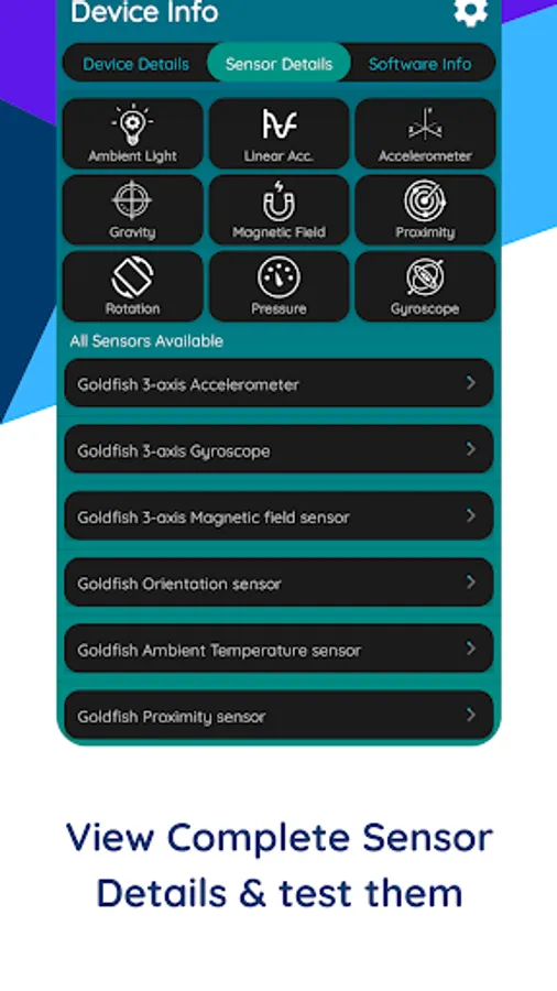 Sensor details shows all Sensors available on your device. Features of all sensors, including their Power, Maximum and Minimum range and delay, vendor, version, and resolution.