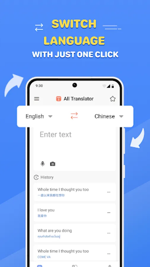 All Language Translator is an easy and fast translation application that converts texts, phrases or notes into any language, quickly translates texts into all languages of the world. The application provides a full range of translations of popular language pairs such as: english to hindi, english to tagalog, english to tamil, english to urdu, arabic to english, english to filipino (etc.)
