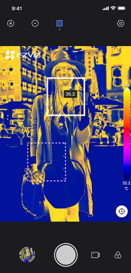 This mobile client is intended for EZVIZ thermal imaging temperature measurement products. By connecting products to mobile phone, it supports temperature measurement, thermal image live view, temperature display area selecting by tapping or drawing rectangles, as well as video recording, photo taking and album browsing.