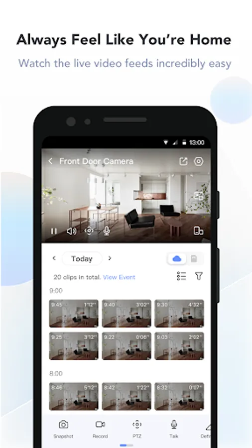 You can get full access and remote control of all devices functions at fingertips, and take necessary actions to ensure the safety of your homes, businesses and loved ones when receiving immediate motion detection alerts on your phone.