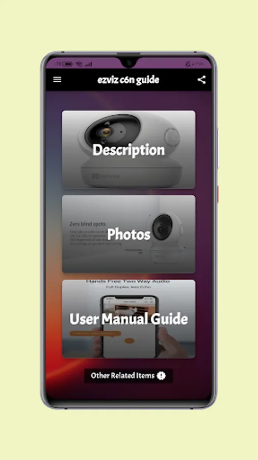 In ezviz c6n guide app we supported many sections of content that will let you now more information about ezviz c6n guide