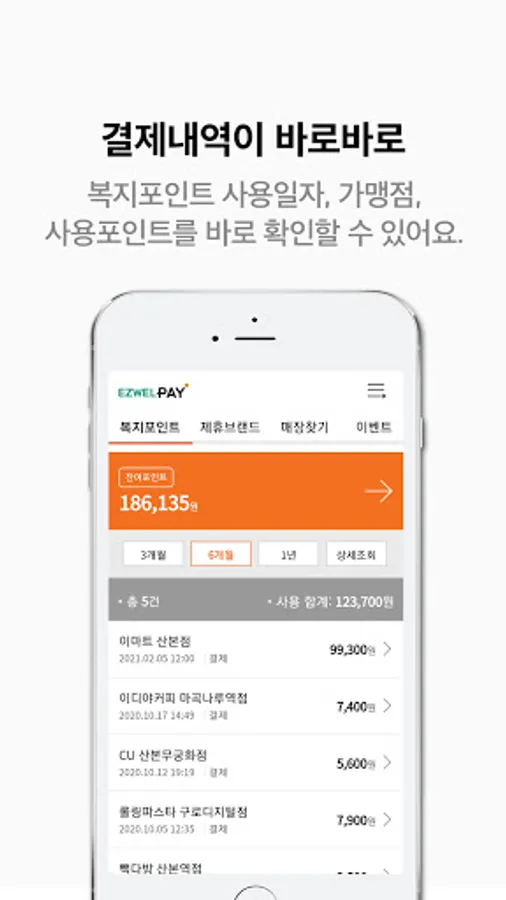 You can immediately check the date of use of welfare points, merchants, and points used.