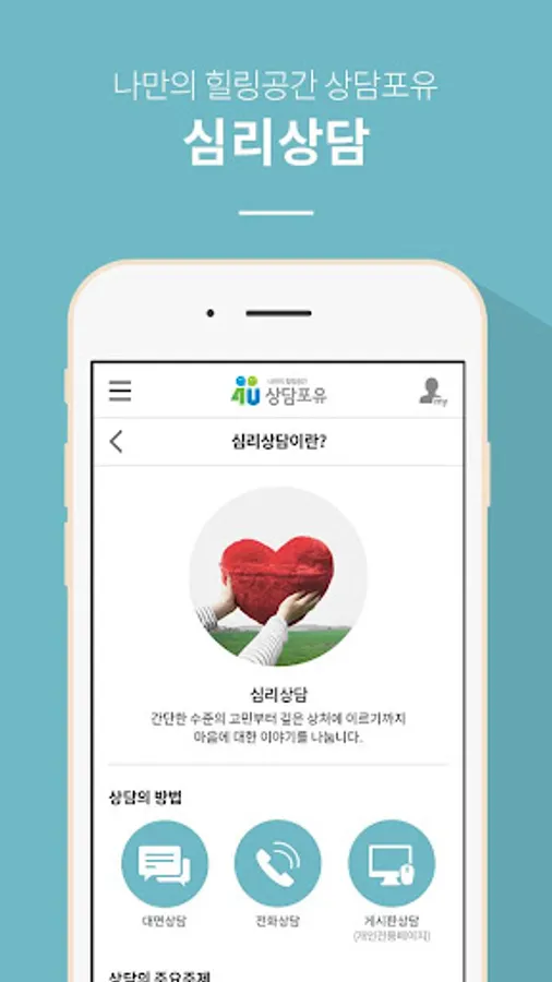 -Various information: counselor and institution guide, mental health column, community, etc.