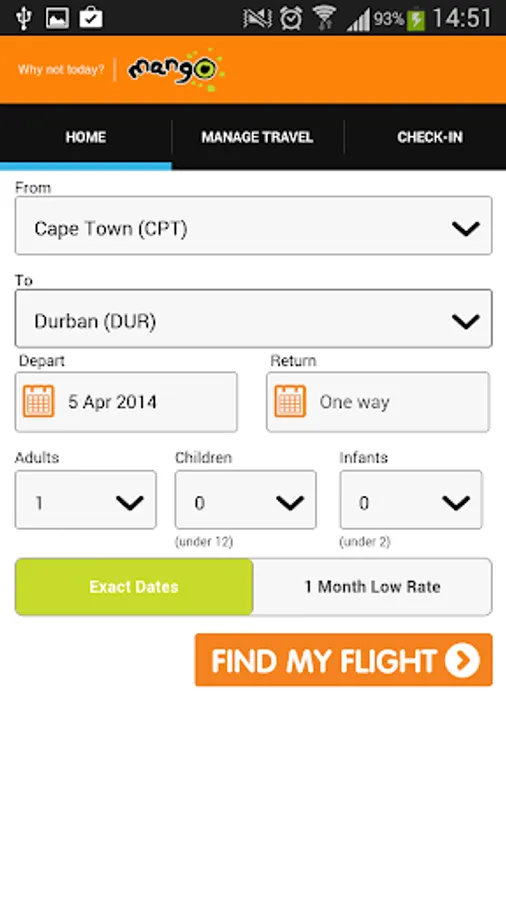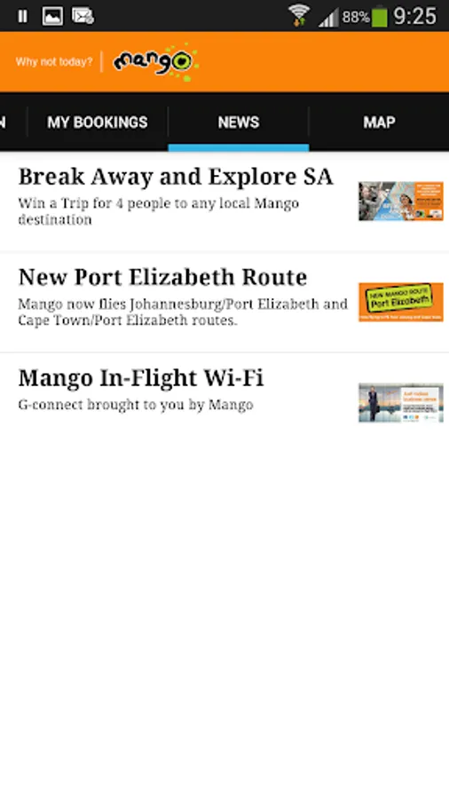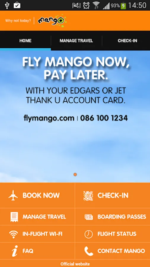 The Mango app is your gateway to South Africa’s most innovative airline. Mango offers on-board Wi-Fi, consistent on-time performance, affordable airfares and app functionality that allows you to book and view bookings in an offline mode and receive specials and promotions. Download it today.