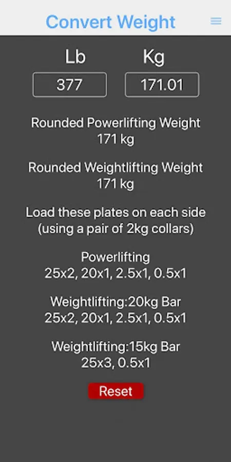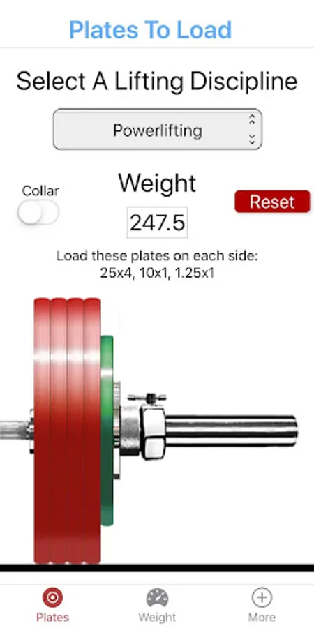 Check to get immediate confirmation that your bar is loaded for the exact weight requested. Avoid those competition or gym mis-loads.