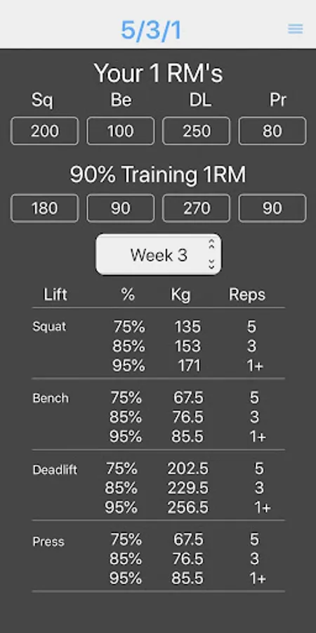 Two strength training program calculators for 5/3/1 & Five Sets.