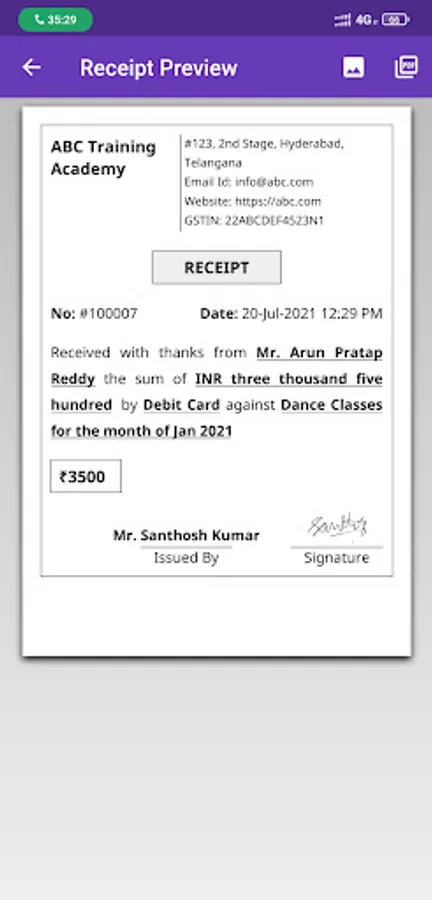 Digital Receipt Book for instant issuing of receipts to customers for the money received (paperless receipt book)