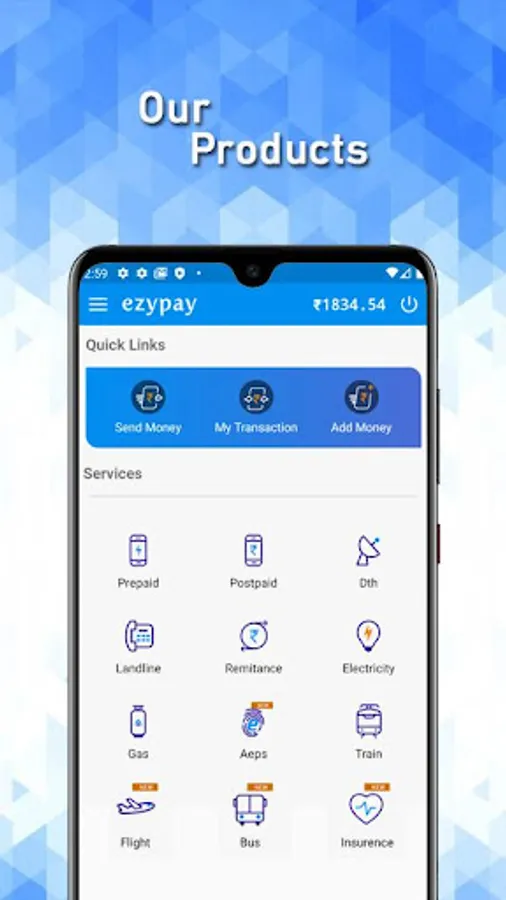 Ezypay is a full-stack mobile platform for banking, merchant transactions, Bill payments, Recharges,DTH, AePS (Aadhar-ATM), Insurance and IRCTC operation. Ezypay partners with the multiple banks under RBI guidelines as banking correspondent.