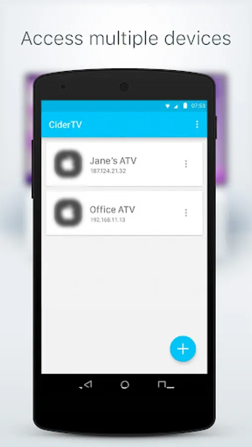 Unlike other universal IR remote controls and apps, Cider TV works via WiFi, so it is compatible with many Android devices even without built-in Infrared blaster (receiver) and with no infrared support (ex. Google Nexus, Sony Xperia, Motorola Droid, OnePlus, Xiaomi, Huawei, some Samsung Galaxy phones, Meizu, Lenovo, ASUS ZenFone etc). No need to jailbreak Apple TV.