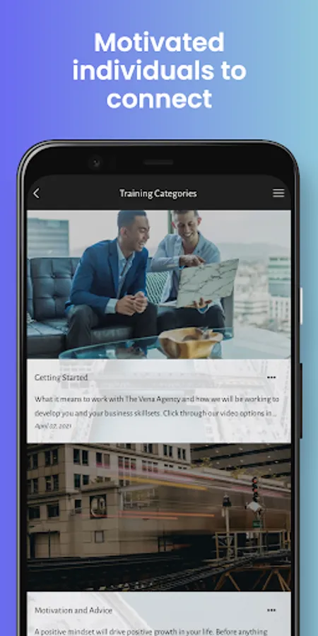 The Vena Application allows like-minded and motivated individuals to connect and explore business and personal opportunities through it's social network, resource videos, and other engaging and relevant content.