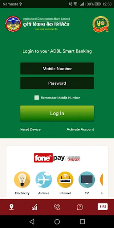 To be able to use this App, you first need to have a valid account maintained at ADBL, and you need to subscribe to the ADBL's Mobile Banking Service.