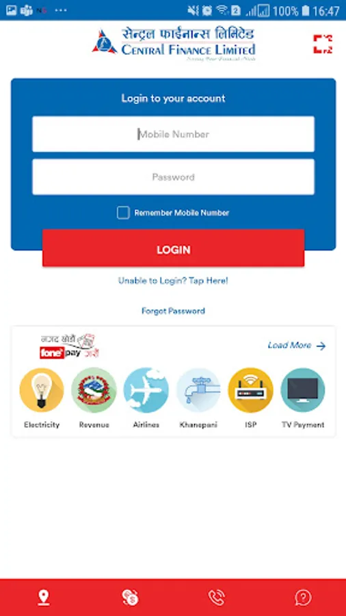 To be able to use this App, you first need to have a valid account maintained at Central Finance Limited, and you need to subscribe to the Central Finance Limited's Mobile Banking Service.