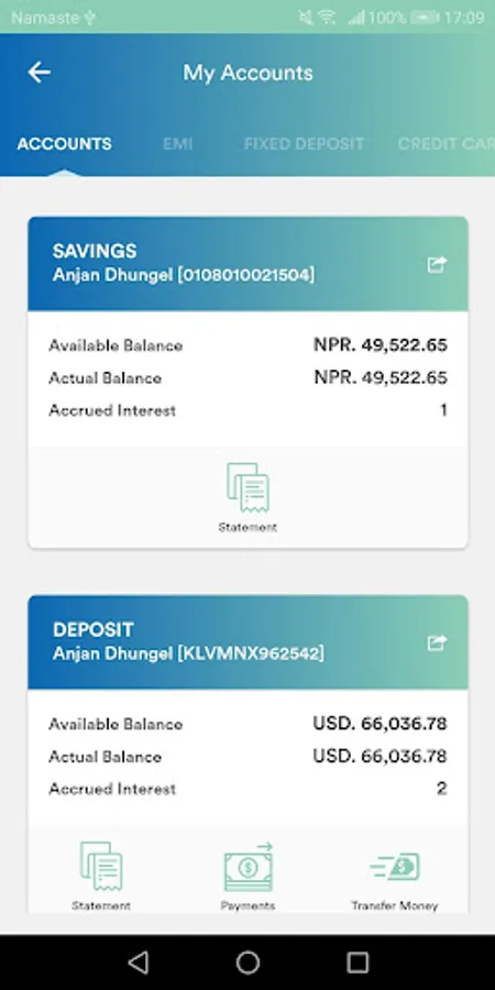 • View your account balances and last 5 transaction statements.