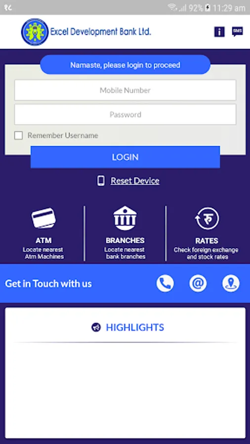 Excel Smart Banking is a convenient and safe transaction banking application offered online. You can manage and access your Excel Development Bank accounts quickly and securely either through SMS, WIFI, 3G or Edge.