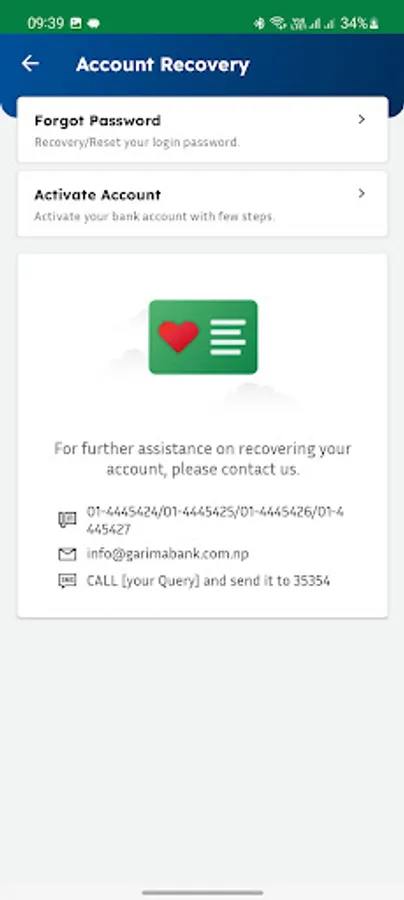 To be able to use this App, you first need to have a valid account maintained at Garima Bikas Bank, and you need to subscribe to the Garima Bikas Bank's Mobile Banking Service.