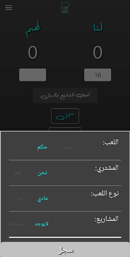 - Calculator Plot: The player can enter the calculation of the cards of any parties (not their total) and press the button Add dubbing and projects and choose the type of play and the buyer and if there are any projects and the application will calculate the cards of the other party and view the result, whether the winner or loss.