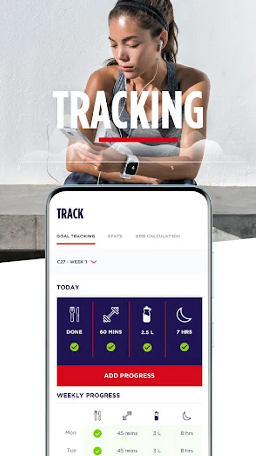 The F45 Challenge App goal-tracking features let you track your goals and get insights into your progress. Use it to keep yourself accountable day-to-day, or throughout the 45-Day Challenge.